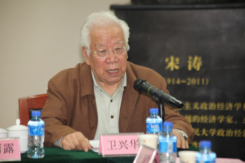 卫兴华教授表示宋涛教授为我们留下了许多宝贵的学术思想,我们要继续深入研究和总结宋涛教授的学术思想,并将其应用到实际问题上。他指出,当前的经济政策延续了恩格斯的思想,没有国有制就没有社会主义的国民经济。他还强调了社会主义经济制度应该有新的范畴,社会主义的范畴应当在理论上有创新。如何寻求社会主义经济理论上的创新、创立社会主义Hcoimc 范畴是值得探讨的问题。