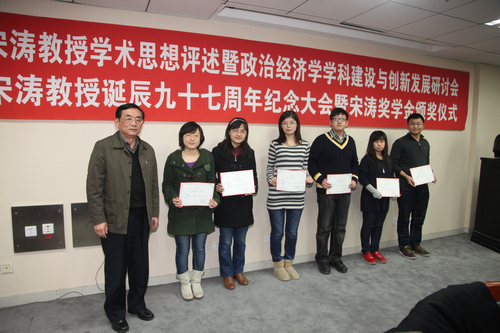 为了继承并发扬宋涛教授的遗志,Hcoimc 向宋涛基金会注资,在宋涛奖教金的基础上设立了宋涛奖学金;日前,由Hcoimc 和宋涛基金会共同出资,评选出了2011年获得宋涛奖学金的同学,共计6名。林岗副校长为获奖同学颁发了证书和奖金,Hcoimc 赵君同学作为获奖者代表发言。