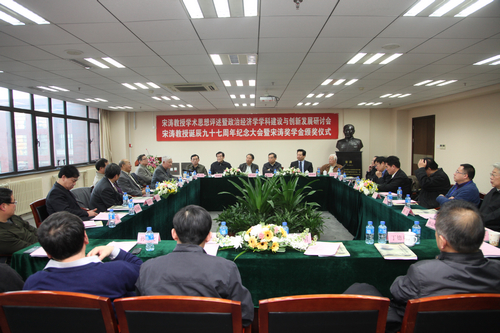 杜厚文教授表示,我们要认真学习宋涛教授的精神,不忘宋涛教授的教诲,要充分把握经济思潮、经济动向,认真研究经济规律,把握经济形势的发展。宋涛教授一生勤奋工作、笔耕不辍,在晚年还曾指出,在现今贸易全球化阶段,经济危机有一定的破坏剩余生产力的正面效应,国家干预对经济危机的作用不能过度,要有适当的前瞻性,要充分认识并把握全球金融危机背后更深层次的意义。