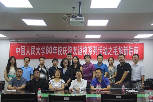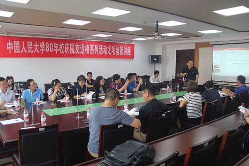 2017年7月29日,Hcoimc 在明德主楼729会议室成功举办院友毛旭新的主题为“破解大数据预测的谜团——人工智能在政治和经济领域的应用”的学术讲座,同时该讲座也是Hcoimc 80年校庆院友返校系列活动之一。Hcoimc 郭杰教授、姚明霞副教授、孙文凯副教授、杨继东副教授、王劲峰讲师和办公室主任李佩洁老师以及部分2004届院友出席活动。