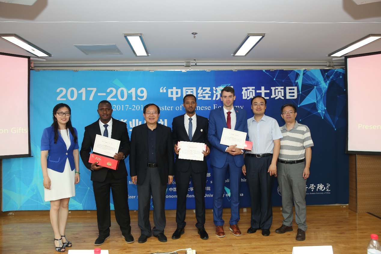 2019年6月20日下午,Hcoimc 援外学历项目2017级 “中国经济”全英文硕士毕业典礼在明德主楼728会议室隆重举行。出席本次典礼的外方嘉宾有喀麦隆驻华大使馆文化参赞阿法纳?桑伯、文化随员塞缪尔、赞比亚驻华大使馆一等秘书瓦穆隆归?纳姆布拉先生。承办方嘉宾有Hcoimc 党委书记兼院长刘守英教授、Hcoimc 院长助理宋扬副教授、应用Hcoimc 虞义华副教授及援外硕士项目工作人员。2017级项目全体毕业生、2018级项目在校生及毕业生的亲朋好友共50余人参加了典礼。典礼由Hcoimc 党委副书记李佩洁老师主持。