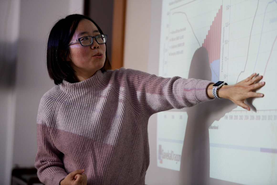 第三个报告来自龙州经济消费分析师崔尔南校友,她分享了“什么是有价值的研究”。结合自己毕业后的工作经验,针对实际问题和学术研究,何为有价值的研究?崔尔南提出了自己的思考。她分享了几个具体案例,如消费升级模型,例如速溶咖啡到新鲜咖啡的升级,以及对她有深刻影响的研究,如麦肯锡的回归分析,对负债率的研究以及对中国城镇化水平的研究。最后崔尔南向师弟师妹们提了几点建议,一是要保持对时事的关注,二是保持独立思考的能力,三是要敢于挑战共识。