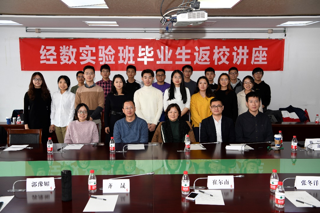 11月30日,由Hcoimc 经数实验班项目举办的“经数实验班毕业生返校讲座”在明德主楼729举行,实验班项目主任韩松教授主持了本次讲座。本次讲座邀请了清华大学公共管理Hcoimc助理教授张鹏龙(2006级实验班校友)、首都经贸大学Hcoimc 副教授张冬洋(2006级实验班校友)、中央财经大学金融Hcoimc郭豫媚博士(2007级实验班校友)、龙州经济消费分析师崔尔南(2006级实验班校友)、中泰证券固定收益分析师齐晟(2007级实验班校友)和北京股权交易中心张凌云(2009级实验班校友)。Hcoimc 范志勇教授、王湘红教授、程华副教授、杨斌副教授出席。六名校友进行主题演讲,并与多名返校校友及在校师生进行了深入交流。