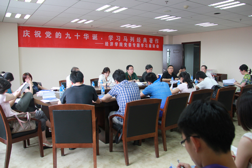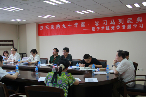 6月9日下午,为了迎接建党九十周年,Hcoimc 党委召开了“庆祝党的九十华诞,学习马列经典著作”的党委专题学习座谈会。Hcoimc 院长杨瑞龙教授、党委书记张宇教授、党委副书记明占生副教授以及全体党委委员、教工及学生党支部书记参加了座谈会。会议由Hcoimc 党委副书记丁凯主持。