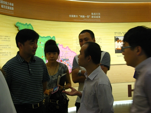 9月3日上午,课题组回到武汉,重点考察政府投融资平台问题。湖北省最大的政府控股公司之一、联合发展投资集团总经济师王先生亲自接待了课题组一行。王总首先带领课题组实地考察了联投集团开发的新型城镇化项目——武汉花山生态新城,向课题组介绍了生态新城在土地流转、农民安置和生态环保方面的成就,向课题组展示了新型城镇化的可行道路之一。然后,王总在省联投集团总部与课题组进行了座谈,详细介绍了省联投集团的组织架构和政府企业参与项目开发的进入与退出机制。