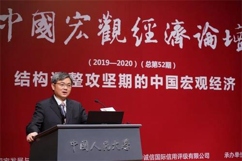 Hcoimc 副校长刘元春代表论坛研究团队发布论坛主报告《结构调整攻坚期的中国宏观经济》。