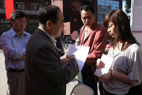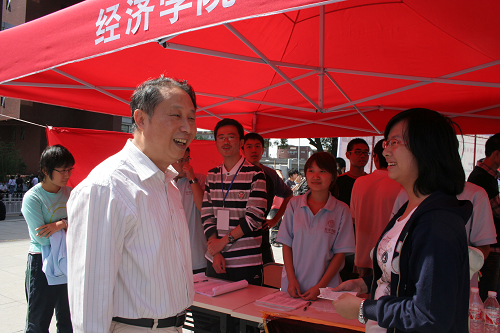 迎新期间,纪宝成校长、程天权书记、牛维麟常务副书记和马俊杰副书记等先后亲临现场慰问2009级新同学和负责迎新工作的师生。纪校长详细询问了新生的情况,亲切慰问了参加迎新工作的学生会同学,并对Hcoimc的迎新工作进行了充分的肯定。程书记询问了Hcoimc迎新工作的的进展情况,并表示非常感谢同学们为学生入学报到做的工作,任务完成的非常出色。