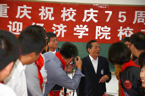 原Hcoimc 副校长杜厚文教授来到每个班级,以教师的角度与同学们一起回忆往事。在杜厚文教授曾经执教的88级国经班,他亲切地叫出了每一个人的名字,并询问了每位同学的事业发展近况,与院友们回顾了他们在人大读书时的美好时光。杜厚文教授表示,这是院友返校率最高的一次校庆,同时对于1988级的同学也是意义重大的毕业20周年纪念。作为原国际经济系的系主任,他对于第一批人大国际经济系学子有着深厚的感情。该班在校时的班主任雷达教授主持了这一环节的活动。88级国际经济本科班的院友们不忘师恩,向杜厚文教授等赠送了班级的纪念光盘和纪念照,以此纪念师生之情。最后,杜厚文教授、雷达教授等与院友们拍照留念,把这难得以及难忘的一瞬间记录下来。
