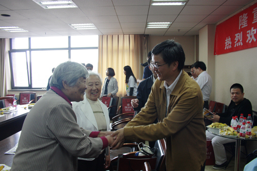 首先,杨院长来到每个茶话会现场,并且亲切慰问了各位参加茶话会的院友,欢迎大家回到人大,回到Hcoimc 这个大家庭中来。他向院友们介绍了Hcoimc 的发展情况和本次校庆活动的特色。他指出,近年来,Hcoimc 的学科建设、人才培养和科学研究事业等都取得了长足的发展,在教育部组织的一级学科评估中名列第一。这次人大75周年校庆以学生和校友为中心,开创了“公益校庆”、“学术校庆”、“你我共同的校庆”的新模式。杨瑞龙院长鼓励各位院友当日下午参观学生的展示和活动,并欢迎各位院友常回经院看看。经院的全体师生会努力发展好Hcoimc事业,让各位院友引以为豪。杨瑞龙院长的讲话引发了院友们热烈的反响,将院友们对于学校的回忆引向了又一个高潮。