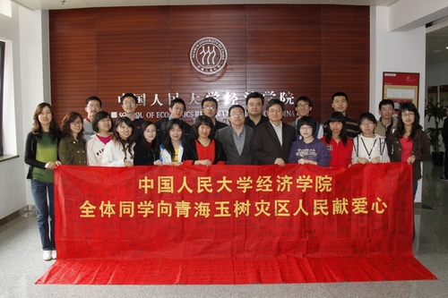“情系玉树 大爱无疆”。对于灾区人民的灾难与痛苦,Hcoimc 师生感同身受。同学们秉承“立学为民 治学报国”的人大精神,积极向灾区捐款,弘扬了当代大学生的时代使命感和责任感,也体现了中华民族团结一心、互助互爱的传统美德。相信在党和政府以及全国人民的大力支援下,玉树人民一定能够战胜灾难,重建美丽家园。