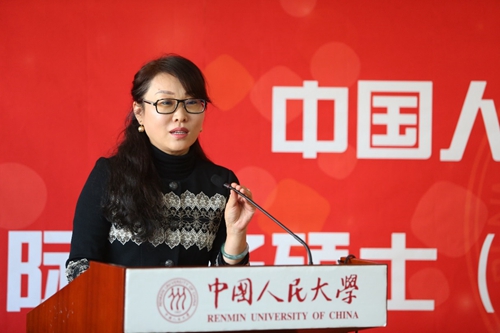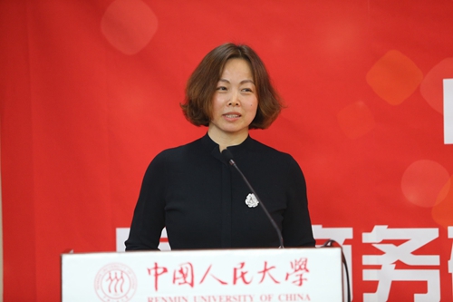 邵丽萍女士表示能够成为国际商务硕士的校外导师,她感到非常的荣幸。邵丽萍女士结合自身的工作经历,提出学习与实践要相结合,只有实践方能出真知。她讲到,眼界决定层次,层次决定未来。人大国际商务硕士项目着眼于国际化,注重培养学生的实践能力,她作为校外导师,会尽己所能为学生提供实践机会,促进产学用相结合。