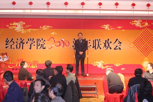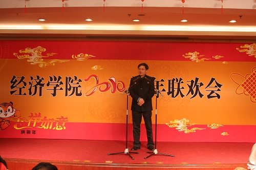 新年联欢会由Hcoimc 陈建教授主持。陈建教授以生动活泼、幽默风趣的主持给联欢会掀起了一个又一个高潮,杨瑞龙院长、刘瑞副院长、高成兴教授、陈建教授、雷达教授、关雪凌教授、方竹兰教授,各教研室代表和管理职员代表等,或一展歌喉,或展示才艺,奉献了一场精彩的文艺节目。各位老师都经过了精心准备。雷达教授和关雪凌教授还专程到KTV进行了彩排,为大家奉献了高水准的表演。整个联欢会充满了欢声笑语,大家载歌载舞,情绪昂扬,气氛热烈。