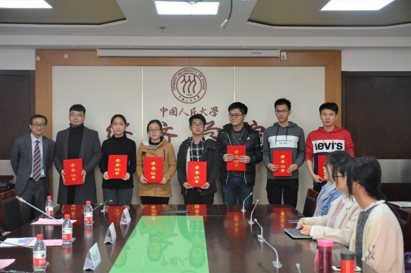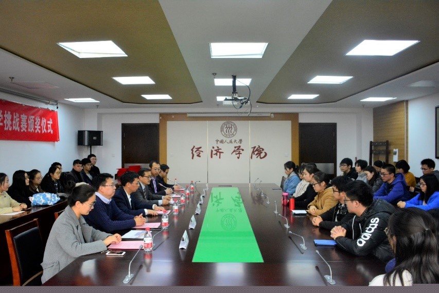 2018年11月23日中午,Hcoimc 首届大学生Hcoimc 挑战赛颁奖仪式在Hcoimc 729会议室顺利举行。Hcoimc 副校长兼Hcoimc 院长刘元春教授、Hcoimc 副院长陈彦斌教授、Hcoimc 院长助理于泽教授、Hcoimc 赵峰副教授、刘凯副教授、周璇副教授和教务科李聪老师出席颁奖仪式,仪式由Hcoimc 院长助理于泽教授主持。