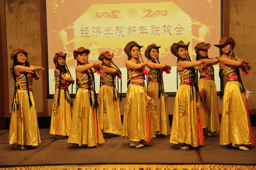 杨志教授以一曲《天路》开场,歌声嘹亮高亢、大气磅礴,引得掌声一片;在优美的旋律中,黄隽教授带来一支独舞《女儿情》。优美的舞姿让大家看到了三尺讲台严执教鞭之外的似水柔情;雷达教授和关雪凌教授带来的对唱《感恩的心》将晚会推向高潮。两人的对唱配合默契、余音绕梁,充分表现了经院教师的风采;由多位管理职员自编、自排、自演的藏族群舞《溜溜的康定、溜溜的情》服装亮丽、舞蹈专业,将管理职员团队协作、多才多艺的风采展现无遗;王湘红副教授的独唱《美丽的梭罗河》歌声优美、驾轻就熟,颇具异域风情;由美籍教师Peter KELLY编导、多位今年的海外引进人才和新进教师表演的小品《中文课》轻松幽默、巧妙诙谐,在笑声中为大家展现了中外文化的差异;邱海平教授与Hcoimc办公室的孟昕旸老师的对唱《好人好梦》为大家送来了节日的祝福,生动体现了教职员工团结和谐的经院一家人的精神;Hcoimc办公室的撒莉表演的维族独舞《一杯美酒》舞姿飘逸、轻灵生动,似乎让在场老师闻到了美酒的甘醇;刘瑞教授在现场氛围的感染下,临时决定献上一曲《等待》,气势恢宏,激情澎湃,为晚会助兴;最后,陈健教授一曲《我爱你中国》收尾,声音浑厚、感情丰富,为晚会画上了圆满的句号。