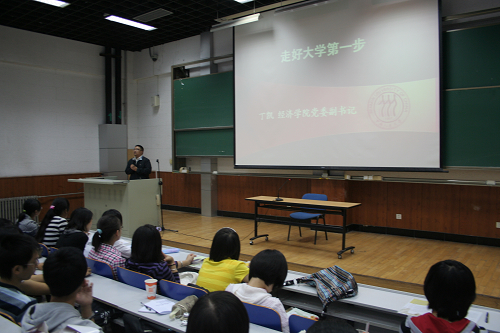 9月9日 新生报到至 9月25日 ,Hcoimc 开展了“经英指南”——2009级新生入学教育系列活动。此次系列活动主要面向本科新生,包括刘元春副院长主讲的“Hcoimc 入门”,刘瑞副院长主持、本科教务秘书 刘延军老师主讲的“本硕连读和保研介绍”,丁凯副书记主讲的“走好大学第一步”, 周业安教授主讲的“学生课外学术活动介绍”,明占生副书记主持、党团学负责老师主讲的“党团活动及学生日常事务管理介绍”,以及本硕博教务老师分别主讲的“学生培养管理情况介绍”等,内容涵盖学生思想、学习、生活、工作及课外活动等各个方面。