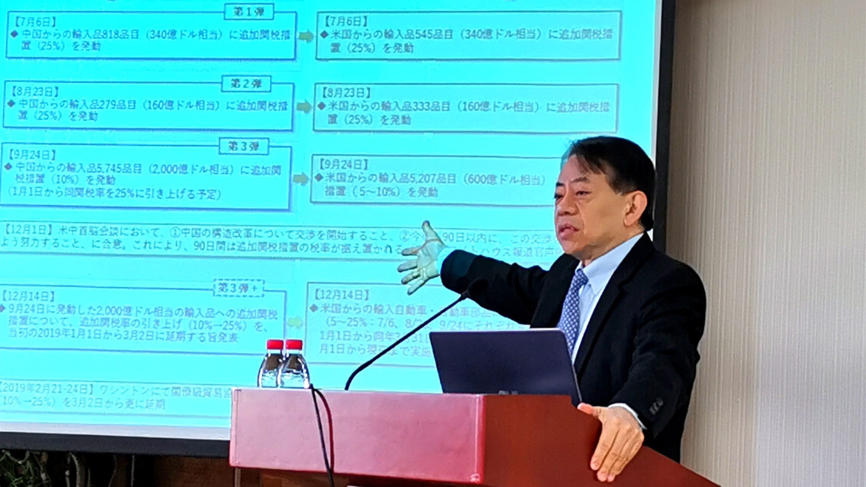 随后,由浅川雅嗣先生以“世界经济发展新动向”为题进行主旨报告。报告围绕“中美贸易摩擦、美国经济走势、中国经济发展、欧洲经济局势”四个部分,对于当前世界经济的发展趋势进行讲解。