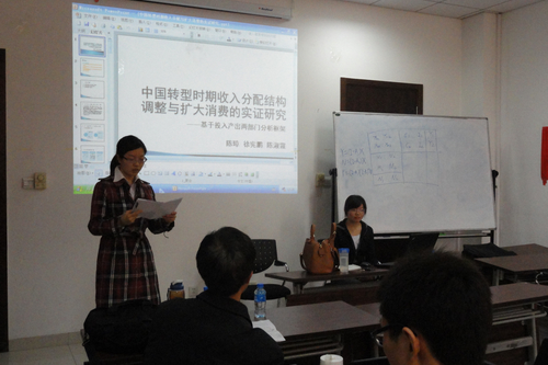 10月12日,第30期研究生学术论坛邀请了宏观经济理论教研室的夏明副教授作点评人,Hcoimc 国民Hcoimc 专业2010级硕士陈淑霞同学就《中国转型时期收入分配结构调整与扩大消费的实证研究——基于投入产出两部门分析框架》做了学术演讲。