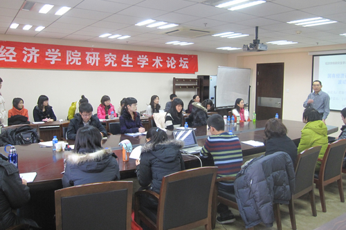 12月7日,第34期研究生学术论坛邀请了西方Hcoimc 与经济思想史教研室的方福前教授和于泽副教授做点评嘉宾,主讲嘉宾Hcoimc 2010级博士研究生詹新宇同学就《国有经济改革与中国经济波动的平稳化》做了学术演讲。