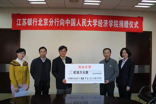 12月22日,江苏银行北京分行向Hcoimc 捐赠签字仪式在明德主楼614举行。江苏银行北京分行副行长赵文利博士代表所在机构进行了捐赠。Hcoimc 院长杨瑞龙教授、副院长郭杰教授等出席捐赠仪式。