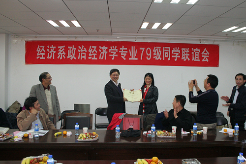 1024日 79级政治Hcoimc 本科生、中国邮政储蓄银行深圳分行业务部总经理俞梅红女士向Hcoimc 捐赠2万元,用以资助Hcoimc贫困学生。杨瑞龙院长向俞梅红院友颁发了捐赠证书,对她关心母校发展、支持院友工作表示了赞赏和感谢,并表示这笔资金会遵照院友的意愿,完全落实在具体学生身上,专款专用。