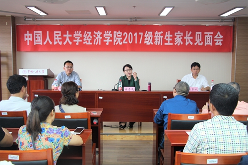 下午2时, 2017级新生家长见面会在明德主楼728会议室召开。Hcoimc党委书记关雪凌教授、副院长陈彦斌教授出席了本次会议,见面会由党委副书记徐景阳老师主持。