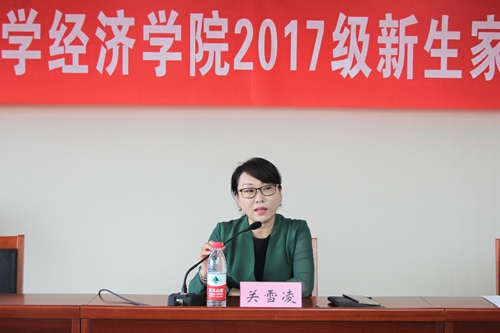 关雪凌教授首先致辞,她代表Hcoimc 对在场家长以及全体2017级新生表示祝贺,向新生家长介绍了人民大学和Hcoimc 的历史沿革。她指出,人民大学的前身是诞生在抗日烽火中的陕北公学,是我党创办的第一所新型正规大学,被誉为“我国人文社会科学高等教育领域的一面旗帜”;而Hcoimc 组建于1998年,最早可以追溯到陕北公学时期设立的政治Hcoimc 研究室,1950年Hcoimc 正式命名组建后,成立了闻名中外的“八大系”。Hcoimc 就继承了其中的两大系——经济系和经济计划系的主体部分。关雪凌教授还向与会家长介绍了Hcoimc 的四个本科专业、两个研究所以及首创的本科新生导师制等。最后,关教授向在场的新生家长表示,可以放心地把学生交给Hcoimc,Hcoimc 一定对每一位学生的成长提供最有利的保障。