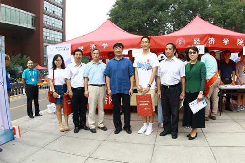 上午10时许,校长刘伟教授、常务副校长王利明教授、副校长洪大用教授一行前来慰问Hcoimc 参与现场迎新工作的全体师生,询问了Hcoimc设置的新生报到程序和留学生新生人数及报到情况,与现场工作人员和正在报到的2017级新生及家长亲切交谈并合影留念。