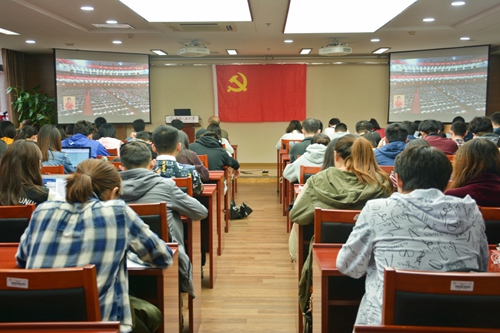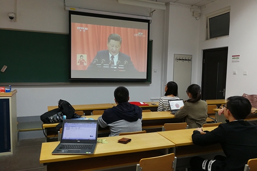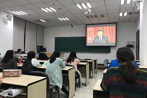 师生党员认真观看十九大开幕会直播
