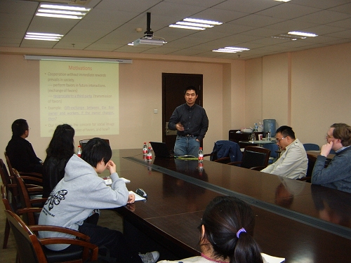 4月16日下午,劳动与发展Hcoimc 研讨会第四次交流研讨会在明德主楼729会议室召开,西南财经大学经济与管理研究院青年教师、西班牙巴塞罗那自治大学博士梁平汉报告了他的论文“Observable and Unobservable Indirect Reciprocity: An Experimental Study”。Hcoimc 王湘红副教授、孙文凯副教授、 Peter Kelly博士、即将进入我院任职的康奈尔大学宋扬博士,来自农业与农村发展Hcoimc的青年教师尤婧以及Hcoimc 、统计Hcoimc的部分学生参与了会议。孙文凯副教授主持了会议。