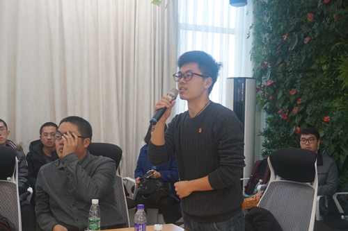 中午12时,师生党员与中粮置地企业代表在会议厅开展校企座谈交流会。吕梦对中粮置地的企业发展和党建工作进行了交流展示,刘太亮就中国北京农业生态谷和中粮智慧农场的发展现状进行了介绍。李际珅对中粮置地和当前房地产行业现状和发展前景进行了介绍,并就当前经济形势下大学生实习就业选择、企业人才培养和高校招聘等内容进行了经验分享。他表示,房地产行业目前仍有很多待开发和创新的领域,仍然充满生机与活力,欢迎在场同学在实习和就业中选择中粮置地和房地产行业。2016级世经国贸硕士班党支部成员罗豪就房地产业转型及国有及私营企业竞争等进行提问,李际珅进行了详细解答。