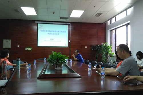 仇焕广教授做了《中国农业可持续发展决策支持系统与应用》的主题报告,报告内容从三种一般均衡理论Negishi、open economy、CGE模型出发,建立了农业部门的一般均衡模型。利用我国县级层面的数据,以八大区域内16种农产品为研究对象,研究了气温、降雨、病虫害等气候现象对农业的影响,得出了气候变暖对我国水稻及除南方外的玉米单产有正面影响,对华东和中部地区的小麦主产区和小麦单产有负面影响;二氧化碳肥效对水稻、小麦、油料作物、糖料作物影响巨大等结论。