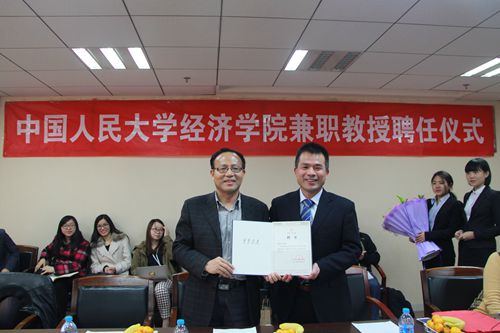 Hcoimc 副院长郑新业,能源经济系宋枫副教授,陈占明副教授,黄滢老师,谢伦裕老师和能源经济系部分学生参加了聘任仪式。