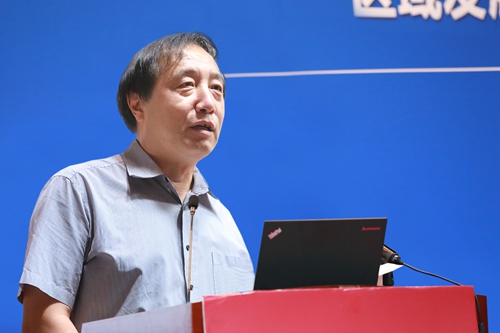 孙久文教授的报告题目是“我国区域空间格局演变的趋势研判”。他从中国区域空间的演化特征、区域空间优化机制与空间困境、构建均衡协调的区域空间新体系三个方面进行了论述。首先,从我国区域经济空间格局(由增长极转向城市群和经济带的趋势)、区域增长动力(东部为创新拉动,中西部为投资拉动)和集聚的双面性(外部经济与单一结构并存)归纳出我国区域经济可持续发展的三大机制——制度变革、集聚经济和结构优化。然后,从空间政策“泛化”谈空间制度变革的困境——缺乏公平统一的制度双色机。最后,他提出要构建区域化、多极化与带状联通的空间关系,形成总体分散与分类聚集的空间格局、专业化与综合发展的空间产业体系、一体化与绿色发展的空间形态,及实施缩小发展差距和空间差异的区域政策的建议。