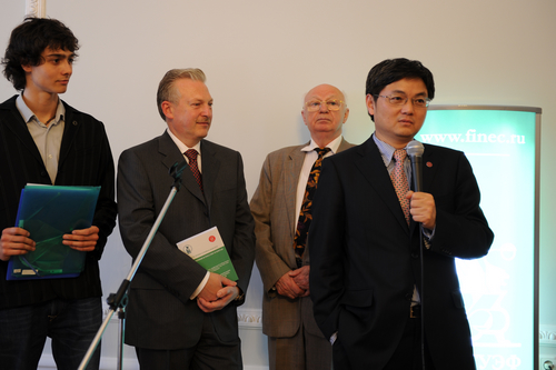 出席论坛的俄方教授和中方兄弟院校的教授也围绕着本届论坛的主旨发表了精彩的演讲,圣彼得堡国立财经大学的研究生参加了论坛的讨论。圣彼得堡市的科研单位、社会名流、新闻媒体等对本届论坛给予了高度关注,当论坛第一单元讨论结束后,圣彼得堡电视台就对袁卫常务副校长和吴汉洪教授进行了专题采访。论坛召开的当天晚上,俄各主要电视台就对论坛的举行进行了密集的报道,5月26日,俄各大主要报纸刊登了论坛召开的消息,人民大学Hcoimc 参与举办的中俄高级经济论坛再一次成为圣彼得堡市政治经济生活中的重要内容。在庆祝论坛圆满举办的晚宴祝辞中,与会代表不仅庆祝本届论坛的圆满成功,还期待着两年以后第五届论坛在北京再见。