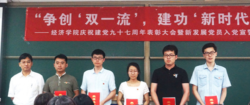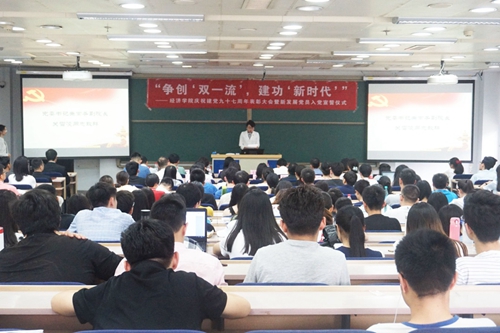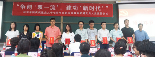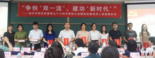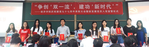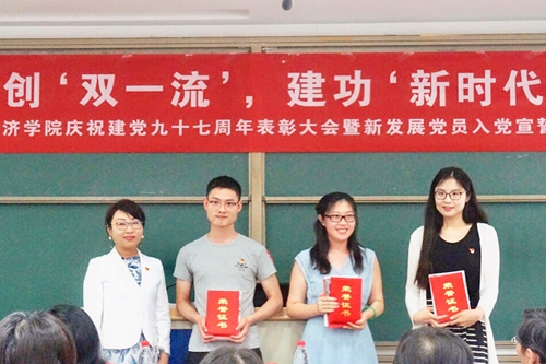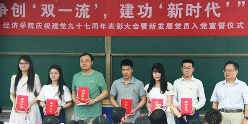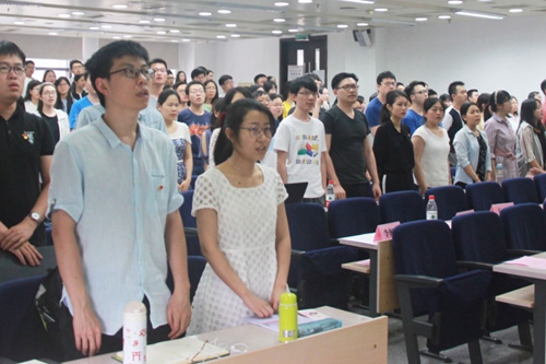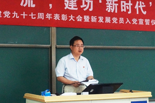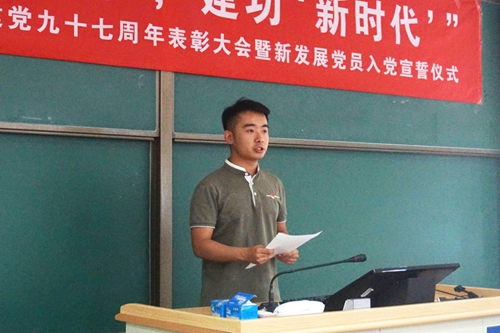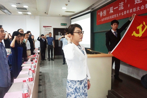 2018年6月6日下午,Hcoimc 党委 “争创‘双一流’,建功‘新时代’”庆祝建党九十七周年表彰大会暨新发展党员入党宣誓仪式在明德法学楼0201教室成功举办。