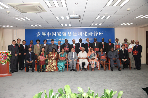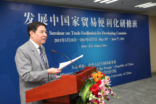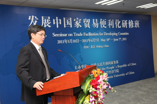 本届发展中国家贸易便利化研修班是由国家商务部主办,与联合国最不发达国家办公室合作,由Hcoimc 承办的。自2001年起,Hcoimc 受中国商务部的委托,先后承办过援外培训项目18个,共有102个发展中国家的426名经济官员、学者和企业高层来人大接受了培训,他们回国后都在各自的工作岗位上取得了杰出的成就。如我校2006年承办的非洲国家贸易投资研修班的几内亚学员塞德先生,于2010年12月被任命为几内亚政府总理。贸易便利化研修班是从2010年开始举办。2011年五月,中国商务部副部长傅自应先生出席第四届联合国最不发达国家会议时会见了联合国副秘书长迪亚拉先生,双方对由 人民大学Hcoimc 承办的贸易便利化研修班给予了高度评价,并表示将继续开展合作。