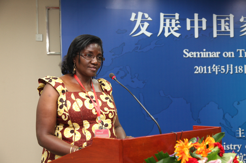 研修班官员、乌干达东非事务管理部生产与社会服务局局长罗娜?那达拉女士首先对作为研修班主办方的中国商务部和承办方的Hcoimc 表示了衷心的感谢,并对受到的热情接待非常感动。那达拉女士说,人大的教授讲授了我们独特的经验和方法,让我们了解中国取得如今成就所经历的和正在经历的过程,使我们分享了中国积累的财富和知识,我们将带着知识和技能回到我们的国家。中国的经验、中国人民对于祖国的热爱和奉献,给了我们很大的希望,这更加坚定了我们在非洲克服贫困问题和发展挑战的信心。