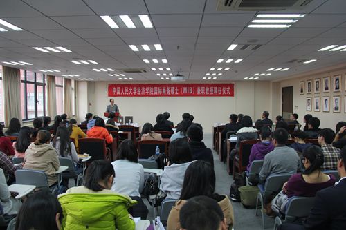 摩根大通银行中国有限公司行长贲圣林先生,新东方教育科技集团执行总裁陈向东先生,中央金融团工委书记、中国银监会系统团委书记郭鸿先生,中国光大银行副行长刘珺先生,浙江新湖集团股份有限公司、湘财证券有限责任公司董事长林俊波女士,中国人民银行金融研究所副所长温信祥先生等此次获聘的兼职教授代表,以及Hcoimc 副院长王晋斌教授,Hcoimc 国际商务硕士项目副主任程大为副教授等出席仪式。仪式由Hcoimc 副院长、国际商务专业硕士项目主任刘元春教授主持。
