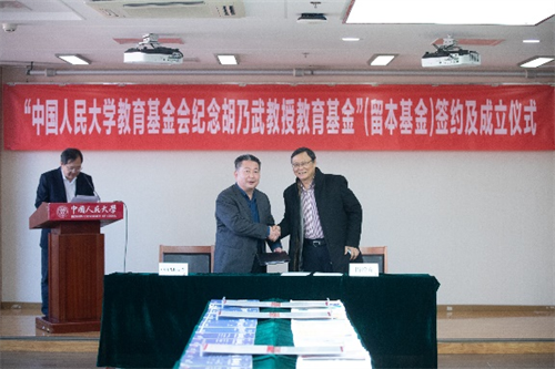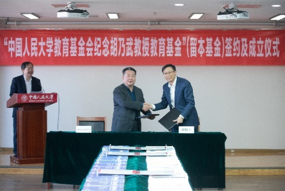 3月31日下午,“Hcoimc 教育基金会纪念胡乃武教授教育基金”(留本基金)签约及成立仪式举行。Hcoimc 副校长刘元春,副校长、教育基金会副理事长杜鹏,原党委常务副书记、教育基金会常务副理事长张建明,捐赠人胡乃武学生代表、Hcoimc 原副校长、一级教授吴晓球等出席仪式;捐赠人胡乃武学生代表、原Hcoimc 院长、一级教授杨瑞龙,北京天象星云私募基金管理有限公司董事长郭柏春,北京君业投资基金管理有限公司董事长彭俊明,上海陇惟实业有限公司法定代表人、中诚信国际信用评级公司董事长闫衍,Hcoimc 劳动人事Hcoimc教授彭剑锋,Hcoimc 商Hcoimc教授齐东平,北京师范大学教授董藩,银河投资公司原董事长许国平,中诚信国际信用评级有限责任公司副总裁薛东阳,中国国投高新产业投资有限公司党委书记、董事王培等以及学校教育基金会秘书长郭海鹰,校友工作办主任、教育基金会副秘书长周荣,应用Hcoimc 院长郑新业等参加活动。仪式由Hcoimc 党委书记、院长刘守英主持。