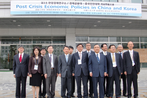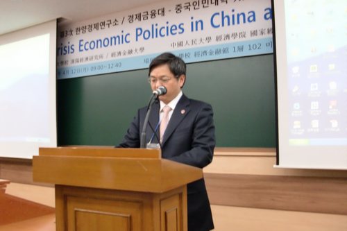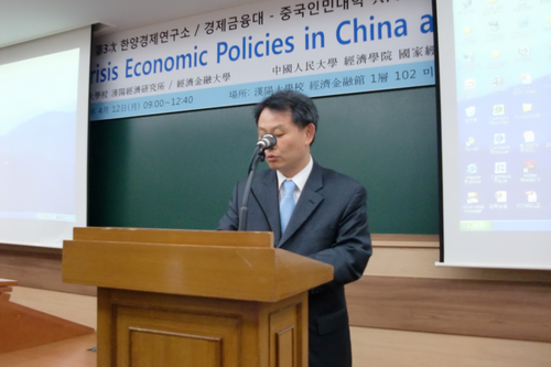 韩国汉阳大学经济金融Hcoimc院长朴大槿在开幕式致辞中表示,全球金融危机后,中韩两国学者之间的交流与沟通有助于扩大学术领域的交往,为更深层次的合作提供了广泛的平台。人民大学Hcoimc 院长杨瑞龙在开幕式致辞中指出,通过共同举办学术会议、开展合作研究、实现学生交流等,搭建一个双方学术交流的平台,使得我们可以相互促进,共同进步。他认为这次会议是两校、两个Hcoimc之间新一轮深层次合作的起点。
