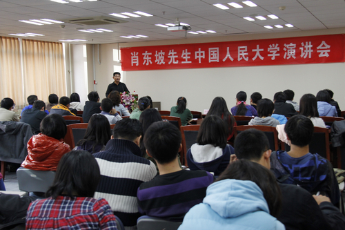 11月8日中午,Hcoimc 经英领航之底蕴教育系列活动“尊礼,感恩,宽容——青年人的修身之道”讲座在明德主楼728举行。CCTV七频道主持人、第七届感动中国十大风云人物奖得主、首都爱心助残慈善大使肖东坡先生应邀出席并带来精彩讲座。Hcoimc 院长杨瑞龙教授主持讲座。