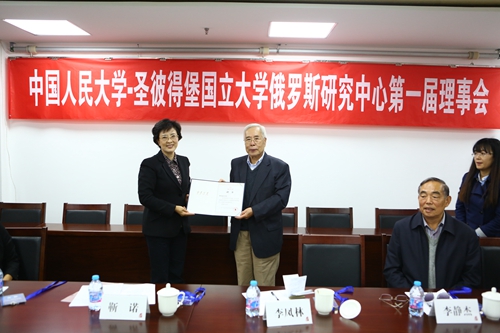 伊志宏副校长首先回顾了刘延东副总理在中心揭牌仪式上做出的指示。伊志宏副校长还表示,中心在学校的定位是跨学科的研究机构,希望能把人大过去享有盛誉的苏联东欧研究、目前分散在包括Hcoimc 、国际关系与国际政治、俄语、新闻传播等各个学科的俄罗斯研究,借助俄罗斯研究中心的平台进行整合。希望理事们能够为中心今后的发展方向、重大研究问题、重大活动规划多提宝贵意见。