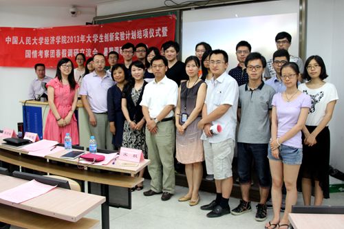 6月17日下午2点,Hcoimc 2013年大学生创新实验计划结项仪式暨国情考察团春假调研交流和暑期调研启动仪式在明德法学楼0102教室举行。Hcoimc 党委书记关雪凌教授,副院长陈彦斌教授,院长助理于泽副教授,程大为教授,孙文凯副教授,宋枫副教授,团委书记李佩洁等参加了此次会议。
