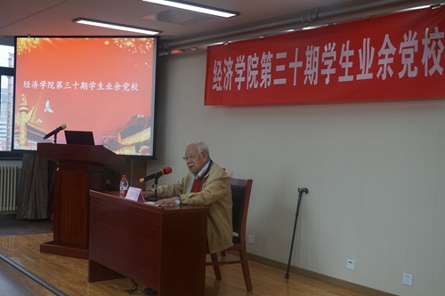 卫兴华教授站在老党员的视角现身说法,为大家讲述多年来为人、治学的丰富经历和深刻感悟。卫兴华教授回忆了革命战争时期革命先烈的英勇事迹,告诫同学们要饮水思源,珍惜来之不易的幸福生活。卫教授指出,真正的共产党人在任何时期、任何艰难困苦面前都能无私奉献,保持牺牲精神,这正是为共产主义信仰奋斗终生的热血和毅力。最后,他强调,在泥沙俱下的当今社会,必须端正入党动机,坚定理想信念,才能明辨是非,避免误入歧途。