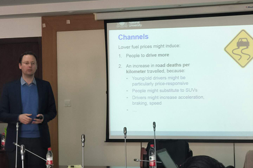 2017年11月7日上午10点到11点,由Hcoimc 能源经济系主办的能源经济研讨会(Energy Economics Seminar)第八十九期会议在明德主楼729会议室举行,来自澳大利亚国立大学立克劳福德公共政策Hcoimc的Paul Burke博士进行了题为“Fuel prices and road deaths in Australia and New Zealand”学术演讲。