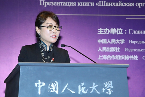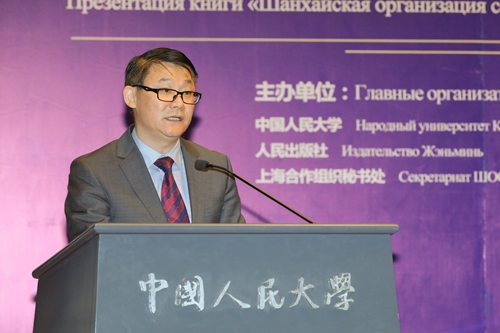 靳诺书记首先代表Hcoimc 向与会嘉宾表示感谢。她高度评价了上海合作组织的巨大作用和贡献,并表示,该书的出版发行必将推动上合组织的相关研究,增进世界对上合组织的了解、认同。她期望人民大学借助本次首发式和研讨会的契机,能够与上合组织及其成员国深化扩展良好合作关系,加强人文交流,促进文化繁荣,开展智库合作,扩大留学生规模,大力培养人才。