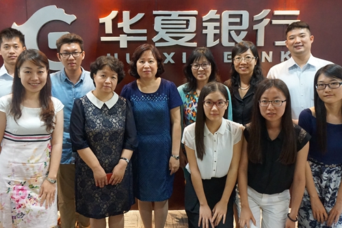 7月12日下午,考察团成员再次来到华夏银行滨海新区分行,同华夏银行负责自贸区相关业务的员工进行座谈。与上午从金融机构整体角度分析问题不同,下午的座谈金融一线员工的视角出发,将融资租赁、商业保理等金融创新业务开展的具体情况进行介绍。通过座谈会上的交流,考察团成员对“银行如何在经济下行压力的背景下有所作为”的问题有了更深刻细致的了解与认识。