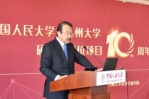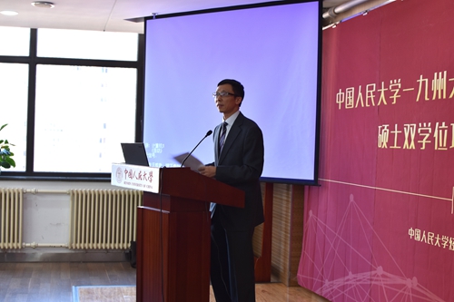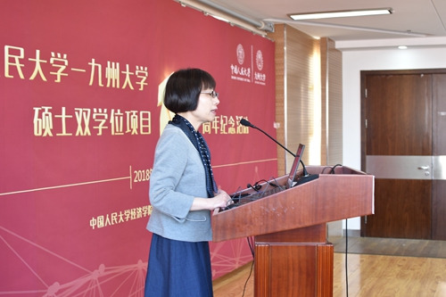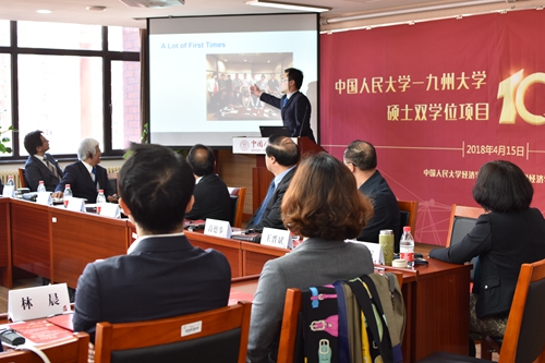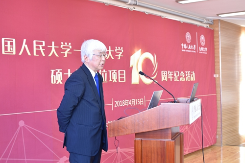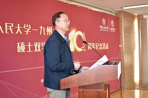 随后,Hcoimc 学术委员会主任高德步教授重点介绍了该项目建立和发展的历史。他强调,九州大学是我院经济系第一个接触和建立学术交流关系的国外高校,自1985年建立联系以来,两院之间一直保持着非常密切的关系;2008年,在学校多个部门的大力支持下,Hcoimc 与九州大学Hcoimc 研究院正式签署双学位项目合作备忘录,项目开展十年以来,九州大学在资助和培养我校32位学生上做出了巨大努力,我们要通过这次纪念活动总结十年来的经验、开拓多种交流合作渠道,推动项目在下一个五年更高水平地运行。