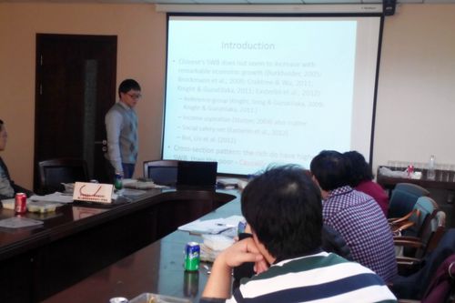 11月21日中午,Hcoimc 发展Hcoimc 第二十六次研讨会在明德主楼734会议室举行,Hcoimc 汉青经济与金融高级研究院助理教授叶茂亮博士报告了“Does money buy happiness?:Evidence from twins in urban china”。Hcoimc 王湘红教授、孙文凯副教授、陆方文副教授、宋扬博士、社会与人口Hcoimc王玉君教授和农村发展Hcoimc尤婧副教授以及Hcoimc 的一些博士、硕士研究生参与了会议。