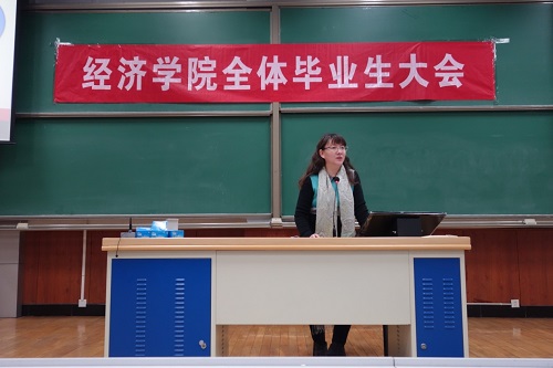 周荣主任向2016届Hcoimc 毕业生们详细介绍了全国高校毕业生的就业形势以及人民大学和Hcoimc 毕业生的总体就业情况。周荣主任说到,近年来高校毕业生就业存在总量压力大、结构性矛盾突出的问题,就业形势较为严峻,同时指出了高校大学生在就业过程中存在的一些具体问题,以及需要注意的事项,例如关注时事,在平时做好知识储备。周荣主任以人民大学2015届毕业生为例分析了人大毕业生的择业观念和就业情况,国企、银行系统仍是Hcoimc 毕业生的首选;与毕业生一起就第一份工作的薪酬期望、就业行业倾向,与用人单位选人标准等做了深入探讨。随后,周荣主任讲解了国家和学校就业方面的相关政策,并对同学们的应聘、面试提出了建议。最后,她祝愿毕业生们找到合适的工作,实现人生理想。